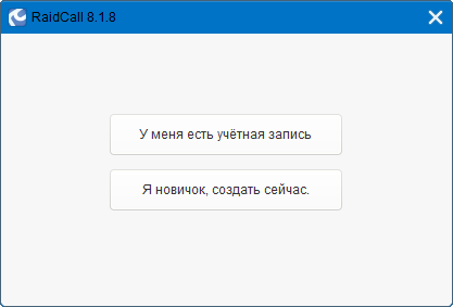 После запуска программы будет предложено войти с учётной записью или зарегистрироваться. Если у Вас уже есть учётная запись, выбираем «У меня есть учётная запись» и переходим на страницу входа (п.4)в RaidCall. Если Вы новичок и у Вас нет учётной записи, То нажимаем кнопку «Я новичок, создать сейчас». После этого Вы перейдёте на страницу регистрации.