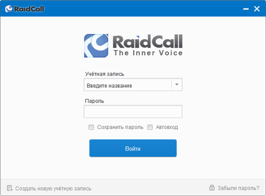 После того как Вы создали аккаунт, переходим в начальное окно RaidCall, заполняете поле «Учётная запись» и в поле «Пароль» вводите пароль. Если Вы не хотите каждый раз при входе вводить пароль, то ставим галочку «Сохранить пароль». И если хотите чтобы RaidCall автоматически запускался при входе в систему, ставим галочку «Автовход». Нажимаем кнопку «Войти».