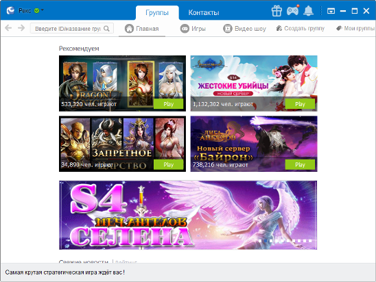 Вы переходите на главную страницу Вашего RaidCall. Здесь Вы можете начать поиск интересующей Вас группы (например, группа клана). Для этого в поле «Введите ID», вводим ID группы (или название) полученную у других участников клана или другого игрового сообщества, и нажимаете «поиск».