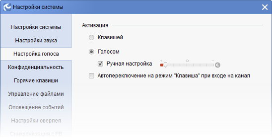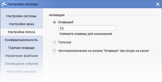 По-умолчанию у Вас установлена активация микрофона клавишей F2. Если необходимо, выберете другую клавишу активации. (В большинстве случаев клавиша F2 уже задействована в играх). Активация клавишей необходима в тех случаях, если Ваш микрофон фонит или имеются посторонние окружающие шумы. И то и другое будет отвлекать Ваших собеседников.