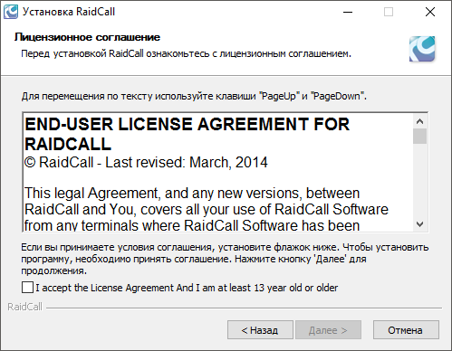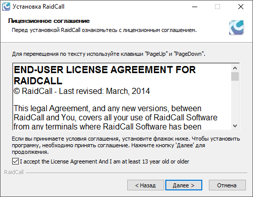 Установка RaidCall не вызывает никаких трудностей, поскольку каждый шаг установки прокомментирован на выбранном Вами языке.